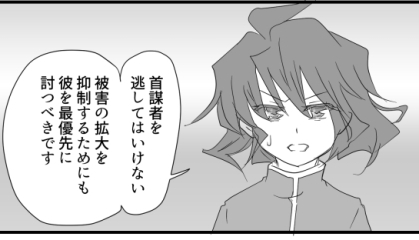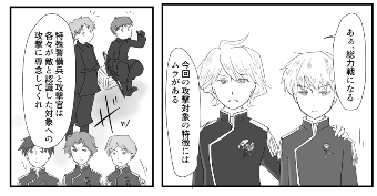 これはクラインが指揮官権限で、攻撃官に攻撃を許可している場面です。漫画でうまく表現できたら…と思いつつ、難しい……